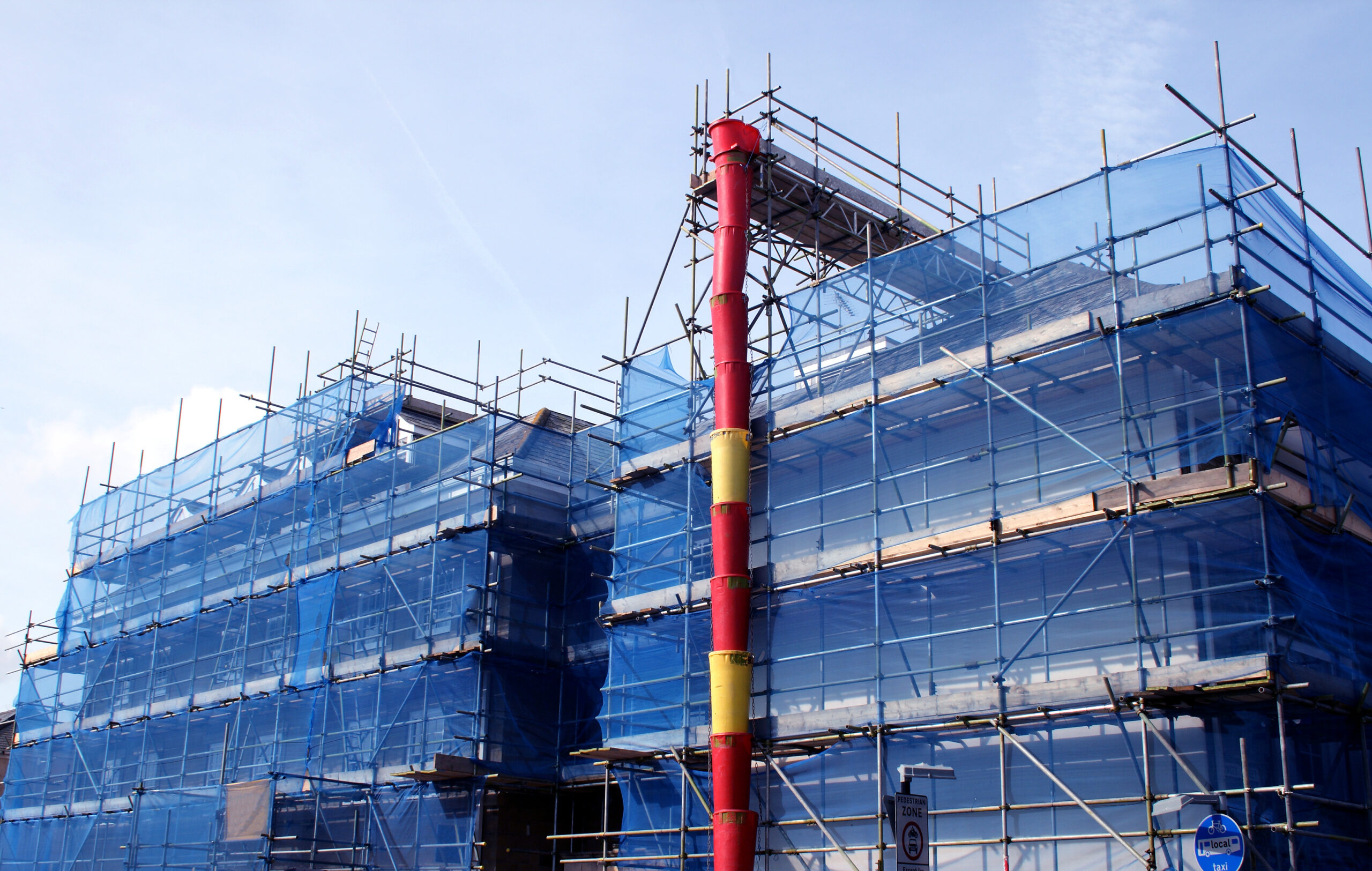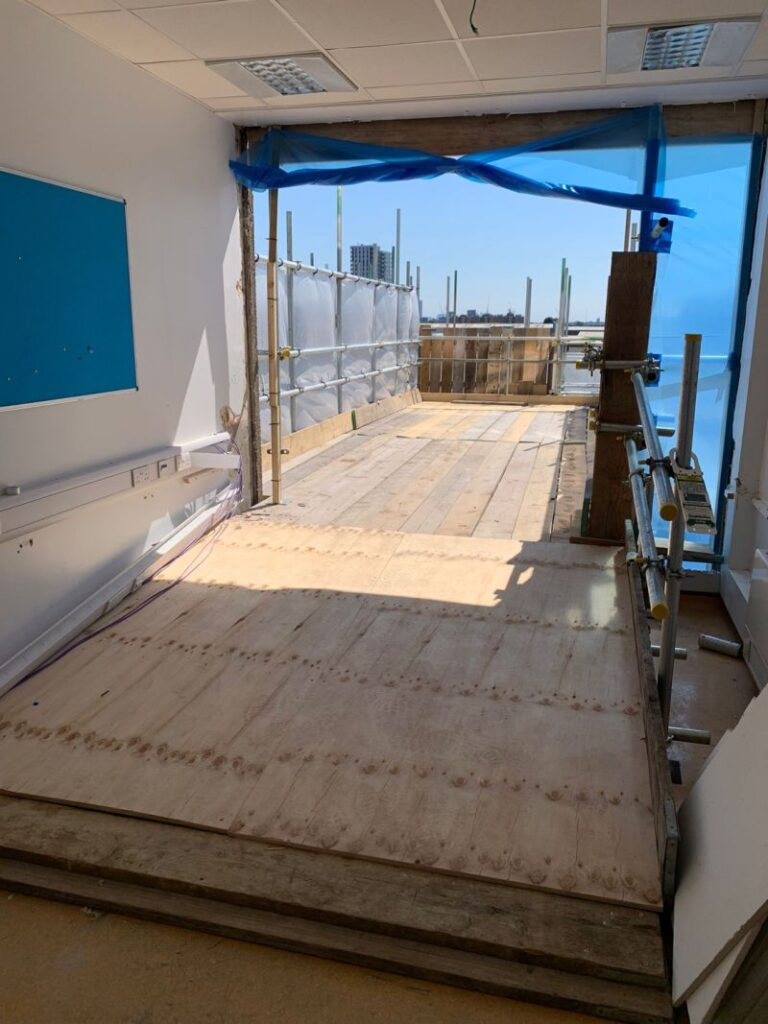 This scaffolding was created to minimize the internal soft-strip transit route from the third floor to the ground.