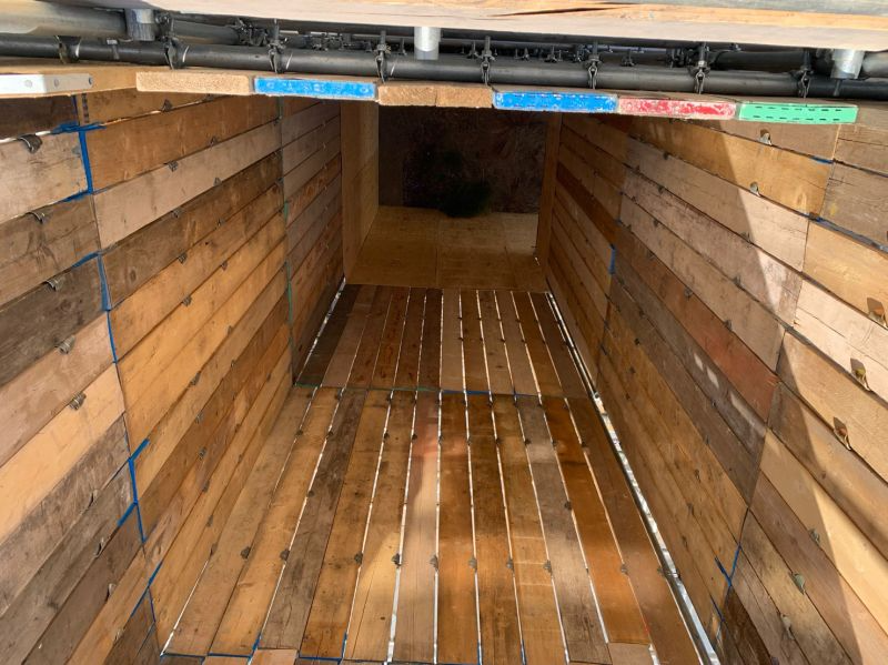 • A fully ranch boarded scaffold chute lined with timber sheeting on the internals and monarflex on the externals.