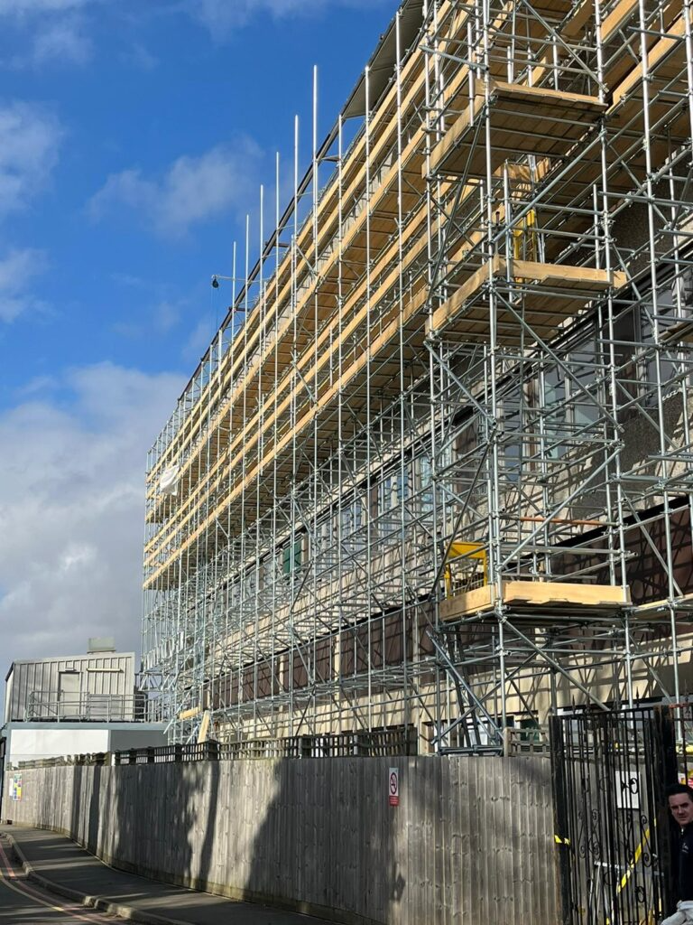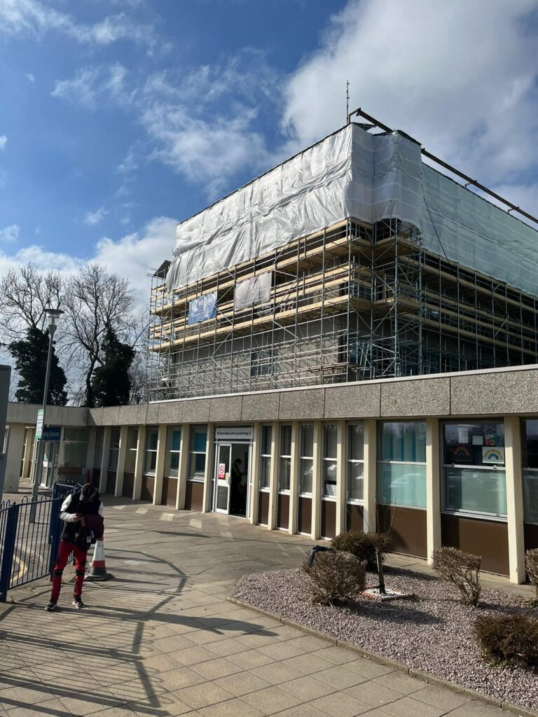 The scaffolding was built in a bespoke manner to form the frame of asbestos enclosures works, which is leading to the overall refurbishment project of the hospital. The refurbishment work is to the Maternity ward with the aim of creating a more dynamic and adaptable environment for patients.